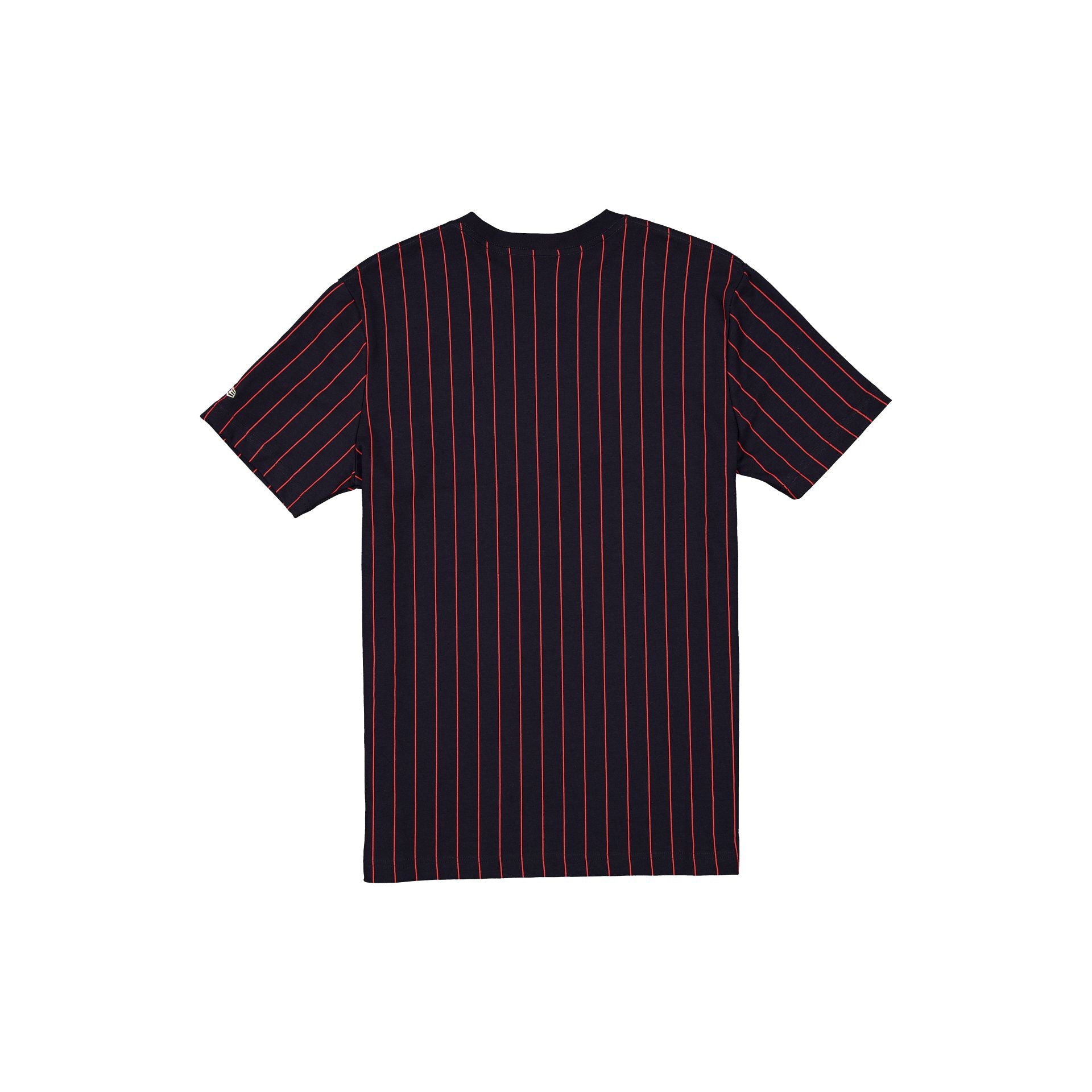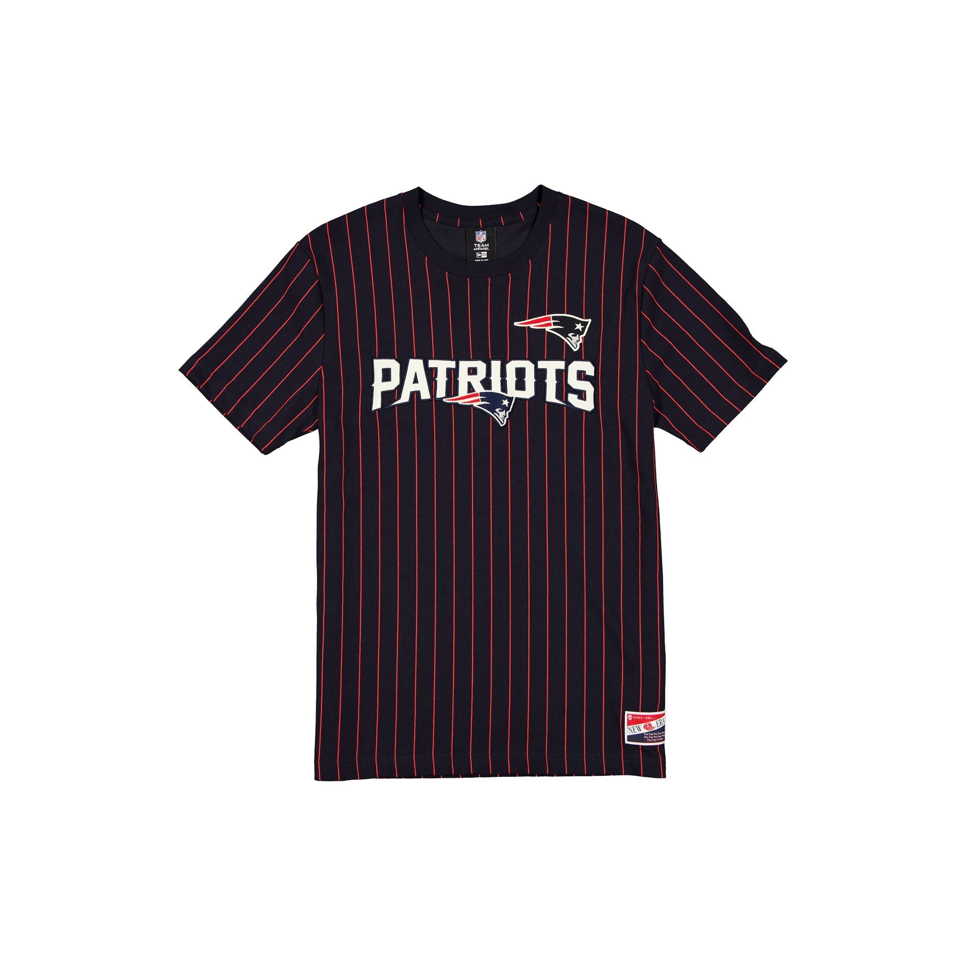 The New England Patriots Throwback Retro Pinstripe T-Shirt features an embroidered Patriots wordmark at the front with a twill applique logo at the left chest.