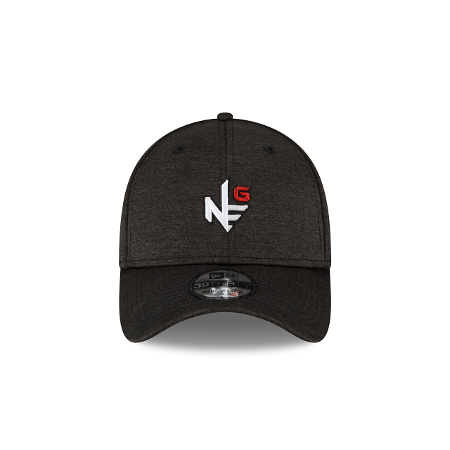 The New Era Golf Black 39THIRTY Stretch Fit Cap features an embroidered New Era Golf logo at the front panels with a corresponding wordmark at the rear and a gray undervisor.