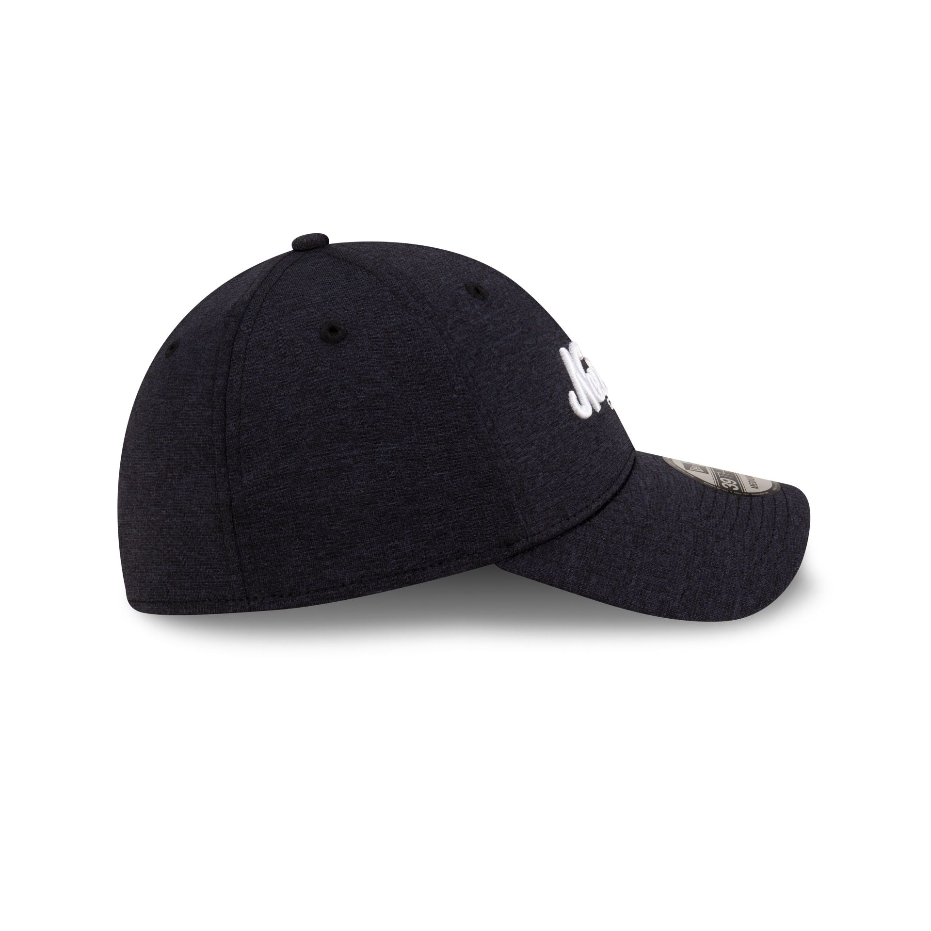 The New Era Golf Script Navy 39THIRTY Stretch Fit Cap features an embroidered New Era Golf wordmark at the front panels with a New Era Golf logo at the rear and a gray undervisor.