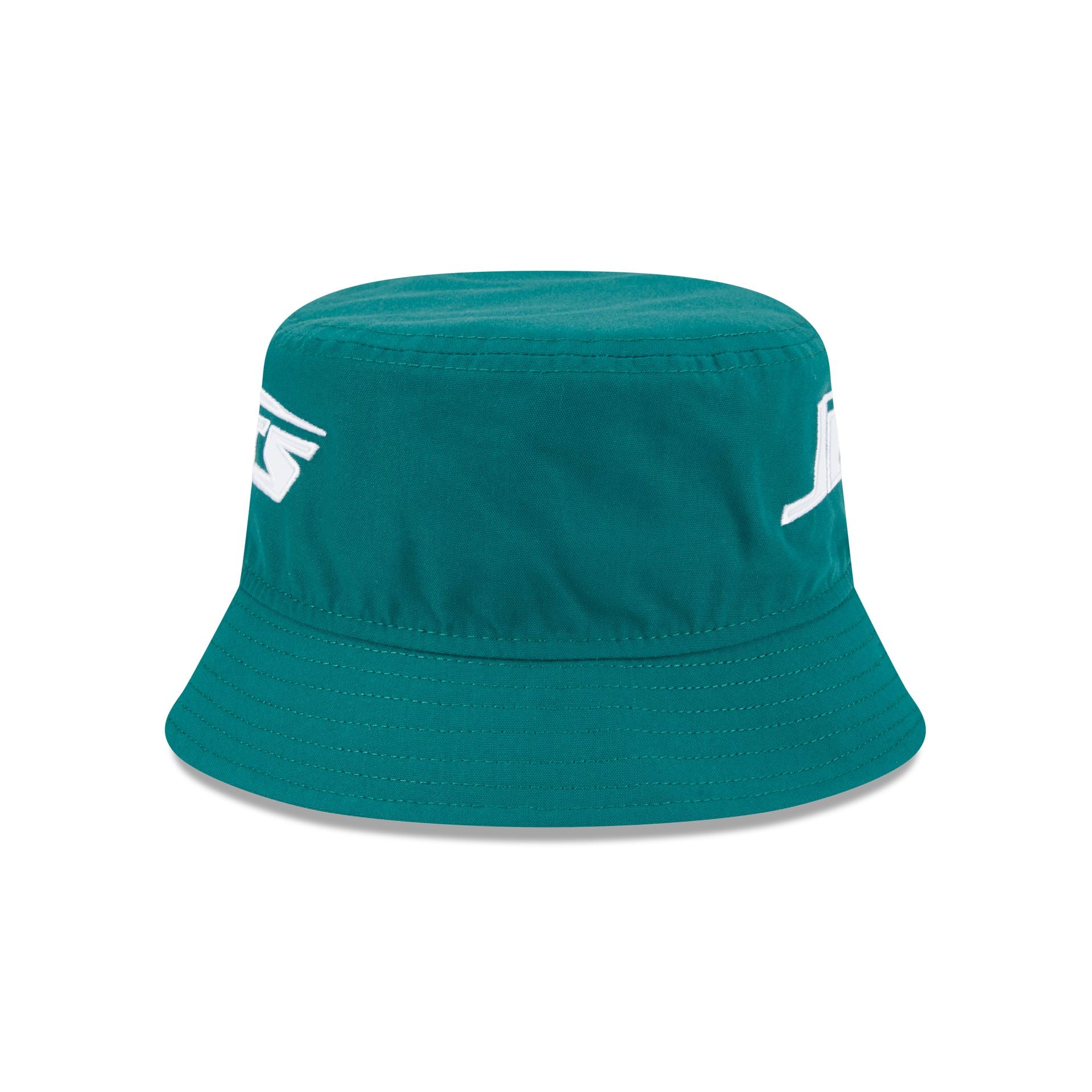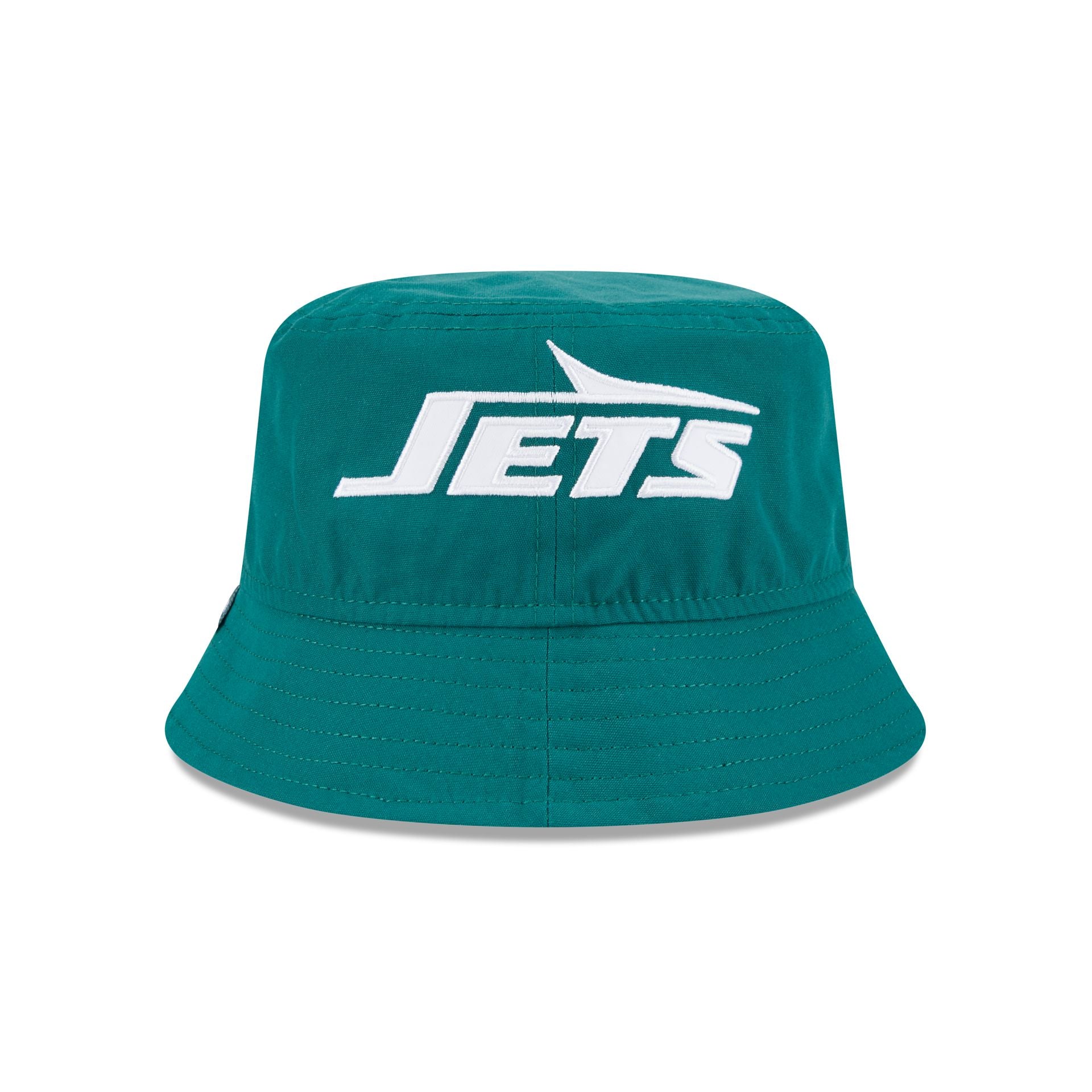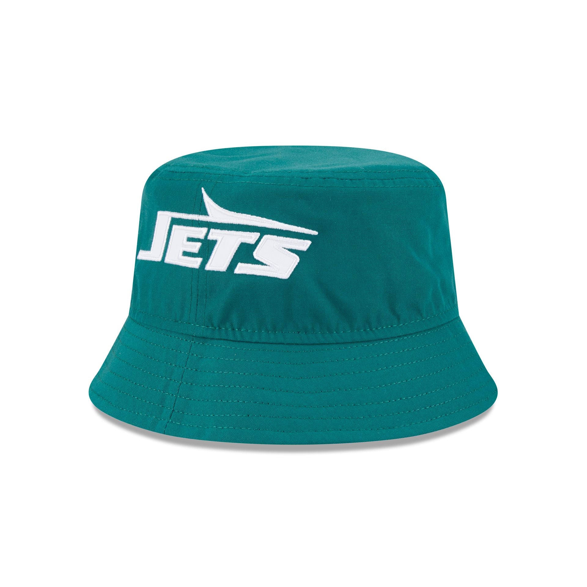 The New York Jets Kids Helmet Bucket Hat features an embroidered team helmet design throughout the hat with a team tag at the rear.