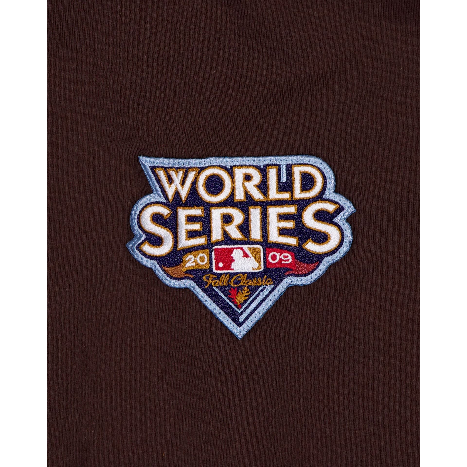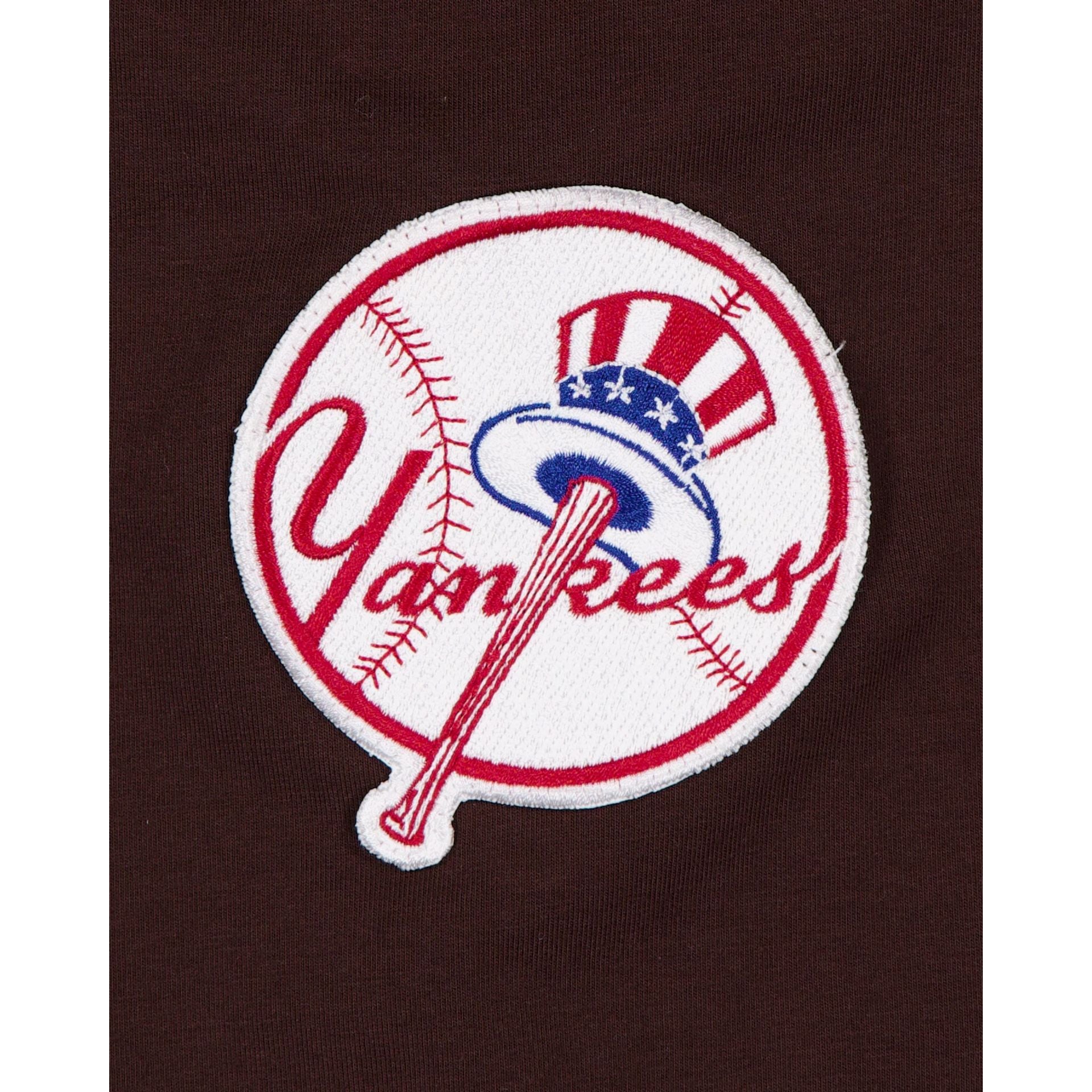 The New York Yankees Logo Select Color Flip Brown Hoodie features a chenille applique Yankees logo at the left chest with team patches at each sleeve and an embroidered team script at the hood.