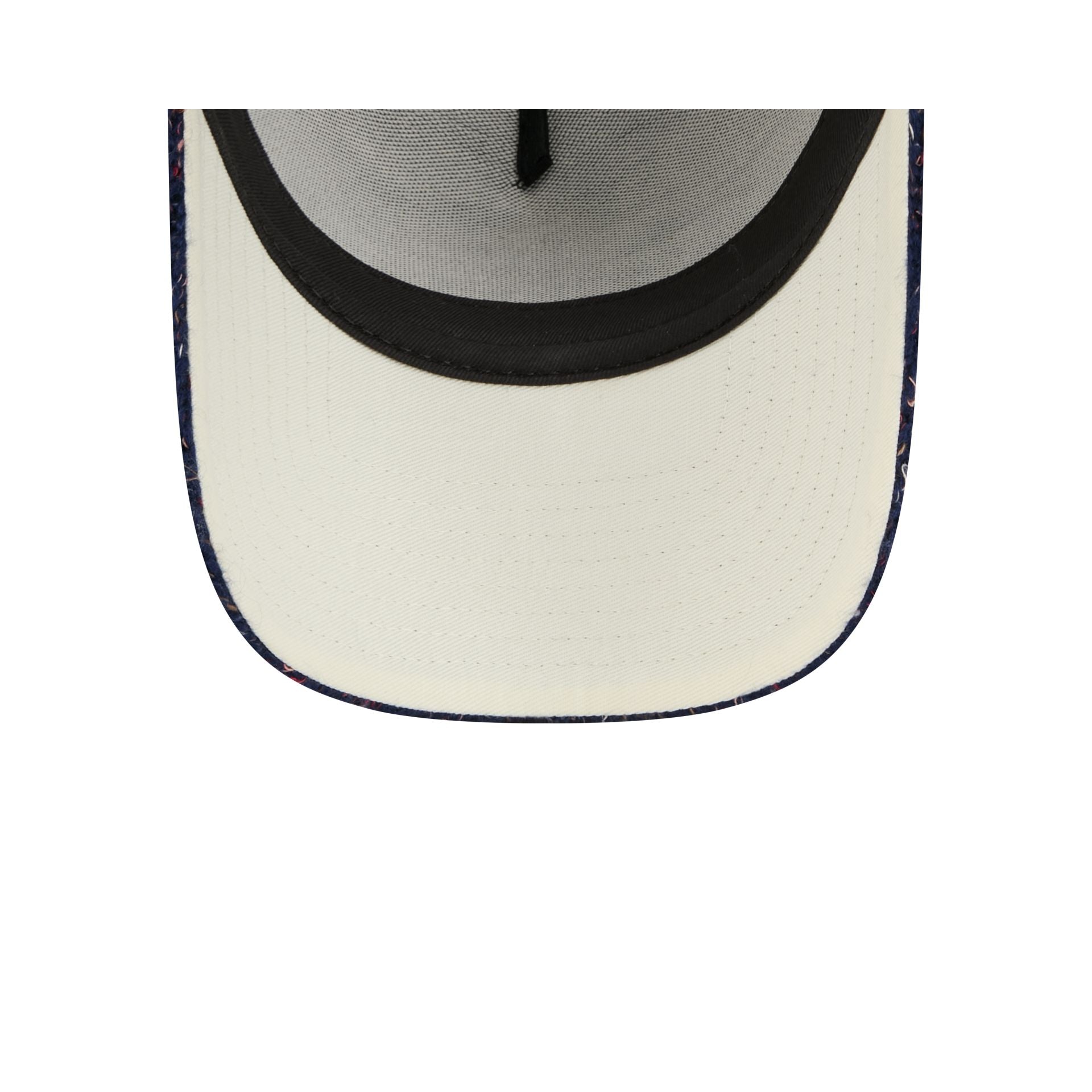 The San Jose Sharks Knit Women’s 9FORTY A-Frame Trucker features an embroidered Sharks logo at the front knit panels. Additional details include a snapback closure at a mesh rear and white undervisor.