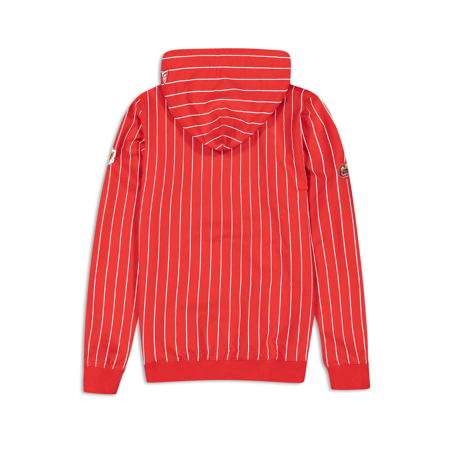 The St. Louis Cardinals Logo Select Pinstripe Hoodie features a chenille applique Cardinals logo at the left chest with team patches at each sleeve and an embroidered team wordmark at the rear.