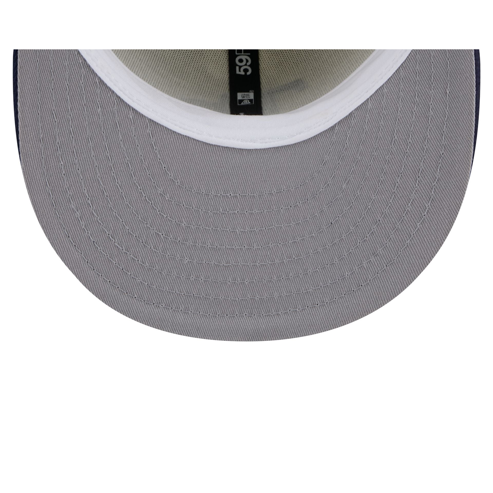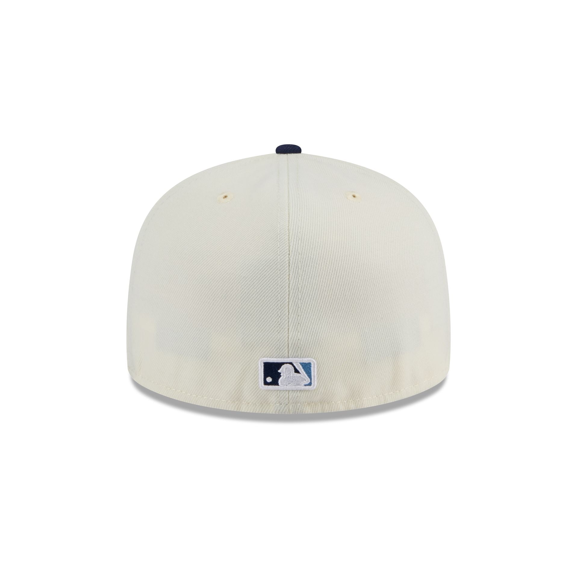 The Tampa Bay Rays Chrome 59FIFTY Fitted Cap features an embroidered Rays logo at the front panels with a matching MLB Batterman logo at the rear. a navy visor. and a gray undervisor.