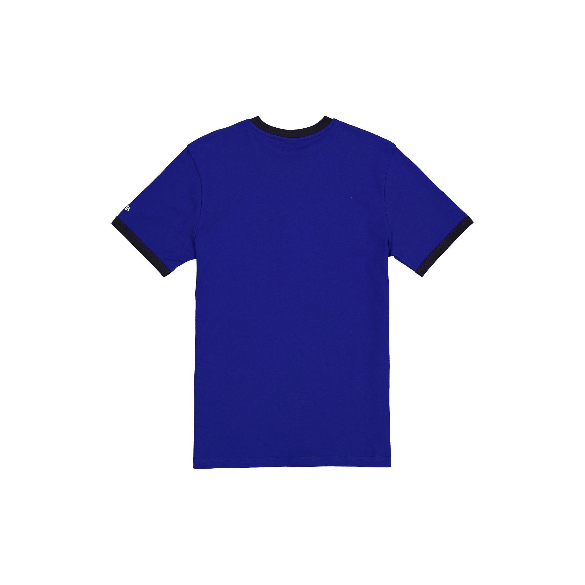 The Toronto Blue Jays Throwback Team T-Shirt features a screen-printed Blue Jays wordmark and embroidered team logo at the front with a New Era jock tag at the left hip. This t-shirt has a v-neckline.